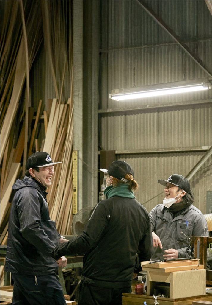 気の遠くなるような長い年月をかけて育てられた「木」という素材。生き物であるがゆえの個性があり、刻まれた年輪の数だけ物語が秘められています。この【木が持つ個性とストーリー】を大切に紡ぎ、あなたに届けることが、今の私たちの使命です。