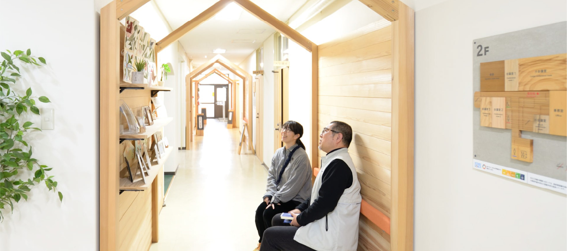 働く人や訪れる人の心をほぐし、より深い対話やコミュニケーションが生まれる場所を「木」という素材で表現できないか。